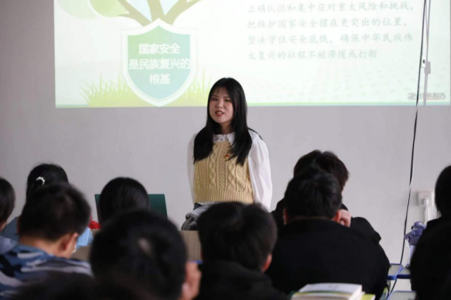 在课堂上,徐悦欣老师以音频结合、师生共研等生动有趣的教学方式,从三个模块分别论述维护国家安全以保障国家发展的正确性、必要性、可行性,让同学们真正认识当今国家安全与发展正处于怎样的新时代与新格局,并清晰意识到作为青年大学生所背负的时代责任。