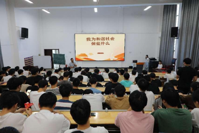 为进一步增强学生的生涯规划与职业发展意识,提升自我认知水平与职业探索能力,2023年11月15日,江西工贸职业学院(及江西省工贸高级技工学校)机电工程系开展主题为“梦想而奋斗——企业家进校园讲好就业创业故事”和“我为和谐社会做些什么”的讲座。邀请浙江长江汽车电子有限公司技术部门副经理宋超和南昌海大生物科技有限公司人事经理曹丹丹为机电工程系学生主讲,机电工程系机电一体化专业、电气自动化专业、人工智能专业学生听取讲座。