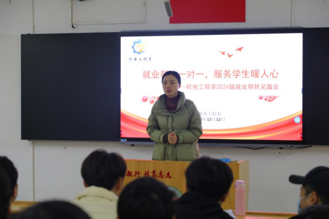 为贯彻落实习近平总书记关于高校毕业生就业工作的重要指示批示精神,江西省教育厅相关文件要求进一步做好学院困难毕业生群体就业帮扶工作,强化就业指导服务和精准帮扶。机电工程系于2023年12月12日在志学楼107组织召开了2024届困难毕业生就业帮扶见面会。系副主任晏慧敏、就业干事张惠超,帮扶联系人老师及42位困难毕业生出席了本次活动。