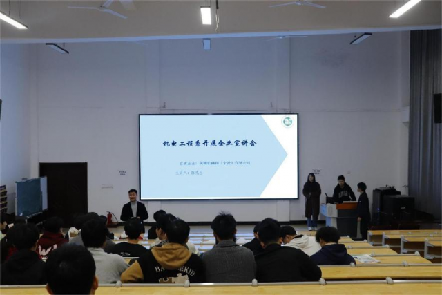 为贯彻党中央、国务院关于“稳就业”“保就业”决策部署,扎实推进“访企拓岗促就业”专项活动。机电工程系于2023年12月27日晚19:00在乐学楼209组织开展了机电工程系企业宣讲会,本次邀请来校宣讲招聘的企业有:宁波市佳利来机械制造有限公司、江南造船集团有限公司、东南(福建)汽车工业股份有限公司、优德精密工业(昆山)股份有限公司、美洲豹曲轴(宁波)有限公司。机电工程系150名毕业生参加。