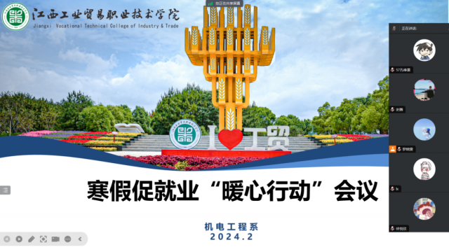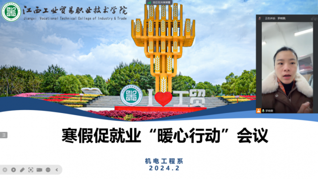 为深入学习贯彻党的二十大精神,落实党中央、国务院和省教育厅对高校毕业生就业工作的决策部署,全面推进2024届毕业生就业工作高质量发展。2月23日上午,机电工程系通过腾讯会议线上开展2024届毕业生寒假促就业“暖心行动”专项会议,系副主任晏慧敏、就业干事罗晓雯、教务管理员王萍和24届各毕业班辅导员参加会议,本次会议由副主任晏慧敏主持。