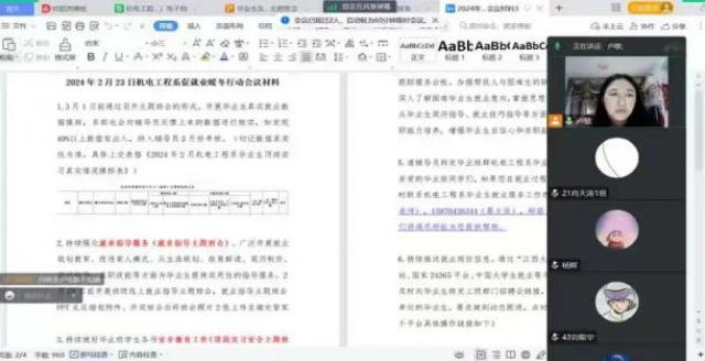 为贯彻落实习近平总书记在党的二十大精神,党中央、国务院实施就业优先战略。切实帮助2024届毕业生解决就业中的痛点难点问题,实现毕业生高质量充分就业创业。机电工程系于2024年2月期间开展“毕业生就业指导”为主题的线上班会。