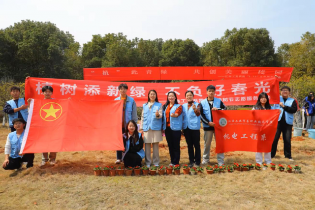 早春三月,草长莺飞间 2024年植树节,依然是我们和春天,不变的约定 让我们相约常青营地 在这片希望之地为自己的青春筑梦 用自己的行动为这个画卷添上自己喜欢的颜色 在欢声笑语中逐梦希望 感受营地的灵动与自然 为践行绿色发展理念,守护校园,美化环境,增强同学们爱植、护植的意识。学院精心组织植树活动,机电工程系师生志愿者于3月12日在图书馆后侧小草坪,开展“植树添新绿 不负好春光”为主题的植树节志愿服务活动,参加本次活动的有系主任马龙凤、系副主任晏慧敏、系团总支书记王卉怡,系志愿者们。 师生齐上阵 工贸添新绿 活动伊始,机电系老师以及志愿者们身穿蓝色马甲早早的来到植树现场。植树前,大家通过老师的讲解,了解了植树须知和注意事项。每个人领好自己的工具、拿上花苗,为接下来的植树做准备。