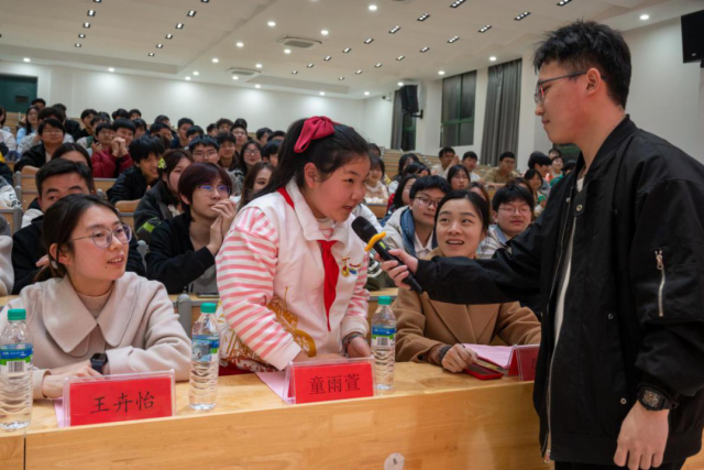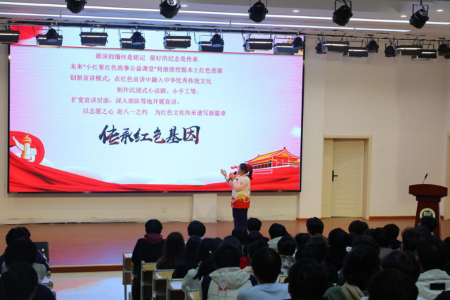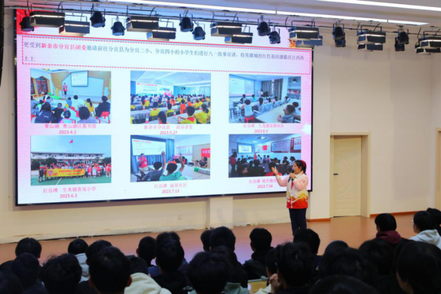 南昌八一起义纪念馆红色故事百人团少年团成员、南昌八一起义纪念馆“八一守护人”童雨萱小朋友。分享了她从5岁起参加志愿服务公益的服务路程,从她的身上展现的志愿服务精神值得每位机电学子学习。