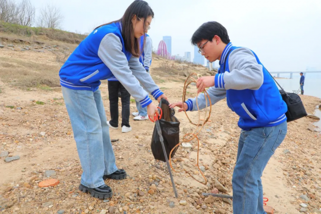 清洁赣江岸守护市民园 活动现场,师生们摒着不怕苦、不怕累、不怕脏的服务意识,互相配合,手持钳子、垃圾袋等工具,认真清理河岸边的白色垃圾、烟头、果皮纸片、零食袋、酒瓶等,合力打造绿色生态环境,为河畔的秀美绿植“减轻负担”,进一步提升了赣江岸边的环境质量,忙碌的“蓝精灵”与一片春意的岸边珠璧交辉,形成了一幅美丽的绘春图。