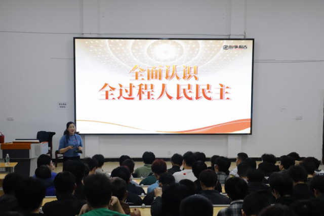 支部书记马龙凤同志就我国全过程人民民主的内涵、特征与制度体系等内容板块进行详细阐述。围绕我国特色人民民主制度从理论基础、政治现实及时代发展等维度展开叙述,基于学科理论充分结合政治实操,以宏观理论阐释与微观现实呈现相相对照,深入浅出地为同学们讲述。