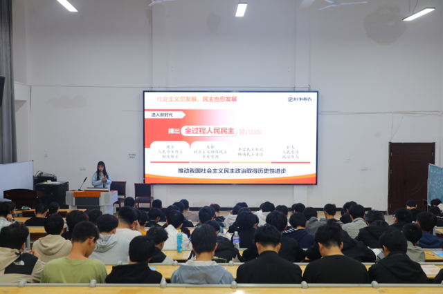 习近平总书记在党的二十大报告中指出:“全过程人民民主是社会主义民主政治的本质属性,是最广泛、最真实、最管用的民主。” 徐悦欣老师从越走越宽的人民之路、科学有效的制度安排、彰显优势的民主模式、可资借鉴的民主典范四个方向,为同学们深刻阐明了中国式民主的鲜明特色和显著优势,丰富和发展了社会主义民主政治理论,为新时代发展社会主义民主政治、建设社会主义政治文明提供了指引和遵循。
