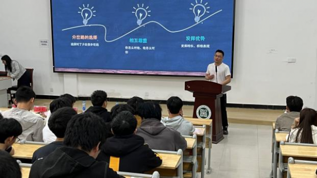 张佳辉校友目前在江西卡奴兰科技有限公司担任区域督导,从自身经历出发,与同学们进行了分享,在校期间属于比较内向,但是为了改变自己经常让自己主动与他人交流,锻炼自己的语言表达能力,这段经历也帮助工作后在销售运营方面提供了很大的帮助,让他取得了很多业绩,鼓励在场的同学们要敢于突破自己。