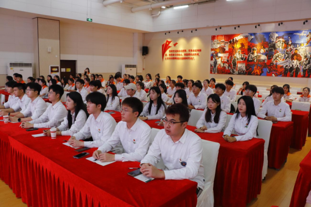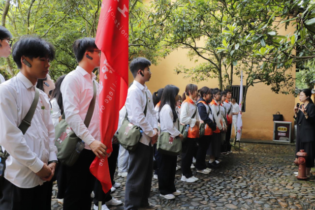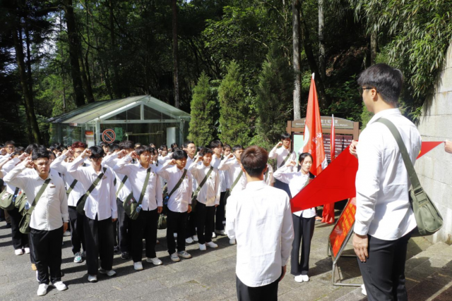 学员们在纪念堂前面向团旗重温入团誓词,向先辈展现出他们的理想信念。