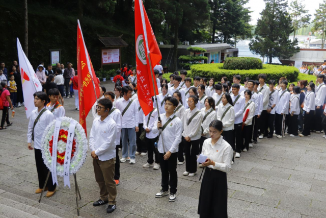 沿革命遗迹缅革命先辈 25日上午,鲜花献英烈,哀思寄忠魂。全体学员在基地老师的带领下来到了井冈山革命烈士陵园。学员们向革命烈士献花圈,并低头默哀,表现出无限的哀思。