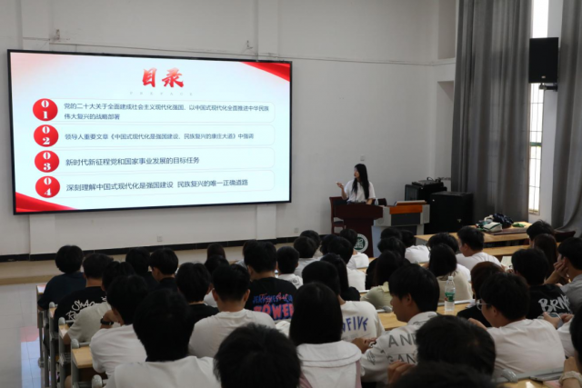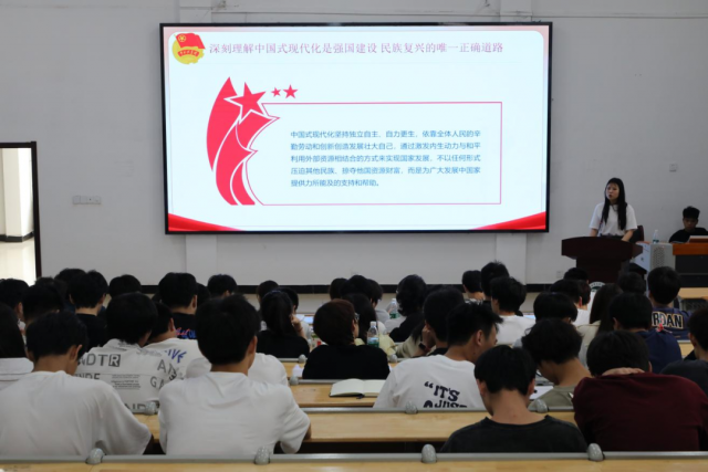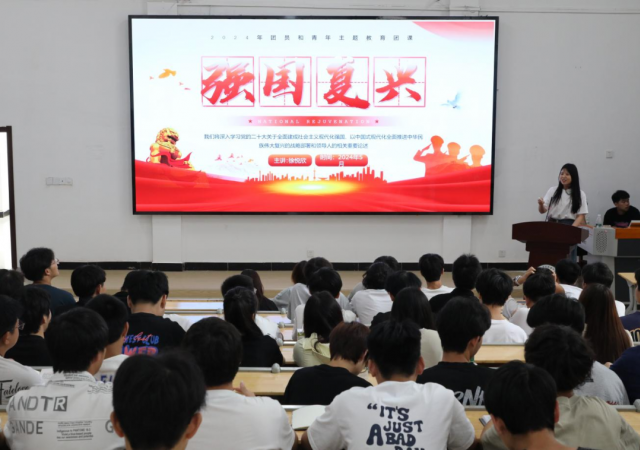 为深入学习贯彻党的二十大精神,关于全面建成社会主义现代化强国、以中国式现代化全面推进中华民族伟大复兴的战略部署,帮助广大青年学子理解新时代新征程党和国家事业发展的目标任务,塑造与时俱进、责任感强的当代青年。 机电工程系业余团校于2024年5月20日下午13:00,由机电工程系专职辅导员徐悦欣在乐学楼209开展学习《强国复兴》主题团课。本期业余团校全体学员参加会议。