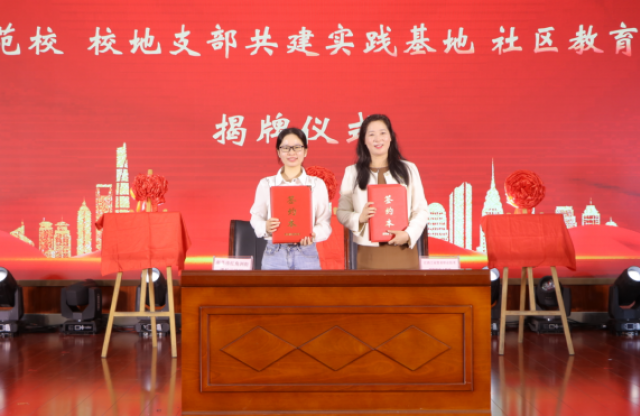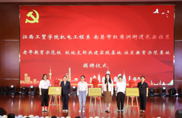 随后,支部结对共建揭牌仪式正式拉开帷幕。在庄重的音乐声中,与会领导共同为社区教育示范基地、老年教育示范校、校地支部共建实践基地揭牌,随着红绸的缓缓揭下,象征着双方党建共建工作的正式启动。这一举措不仅加强了学院与社区之间的联系与合作,也为双方未来的党建工作奠定了坚实的基础。