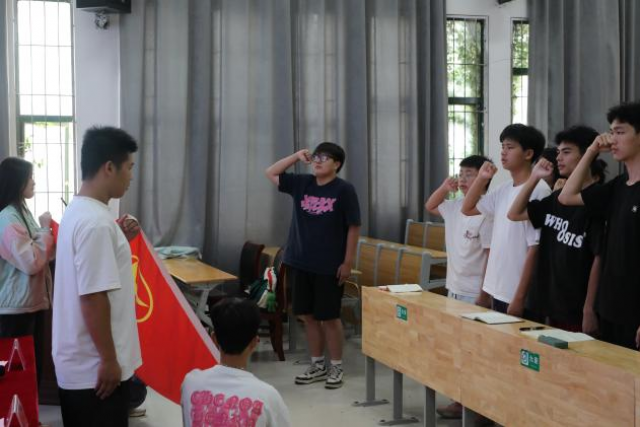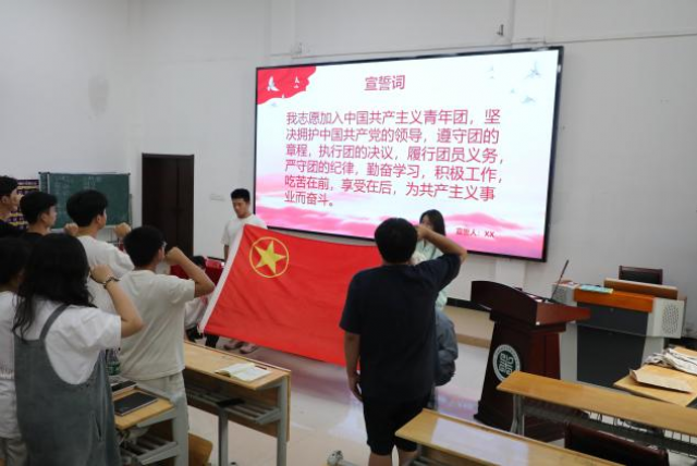 随后,由新发展团员代表张有轩同学带领新团员进行入团宣誓。