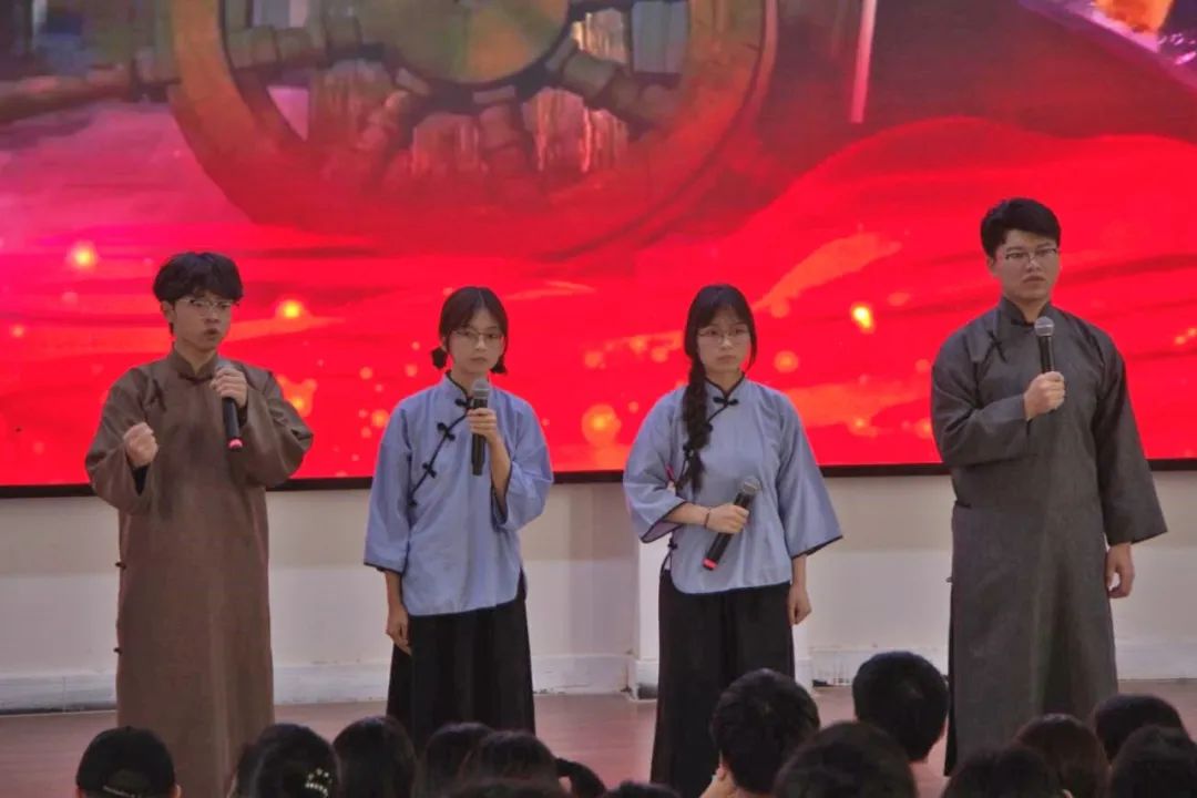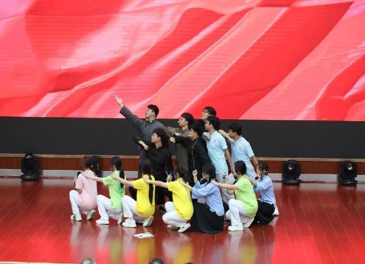 参赛选手紧紧围绕主题,从历史事件、家国情怀等多角度出发,展开了激烈而精彩的演讲。他们通过生动的语言和深刻的见解,表达了对祖国深沉的热爱和崇高的敬意。23新能源汽车技术2班的同学们演绎的作品《红船伊始》,讲述了自1921年建党初期到如今一百多年历史的艰辛历程,这几位同学生动而富有激情的演绎,仿佛让人身临其境,回到了那个战火纷飞时代,更加体会到了先辈们为建党的不易,民族自豪感油然而生。