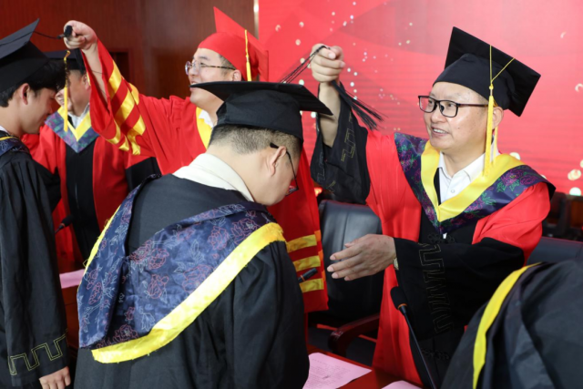 毕业生们满怀喜悦与感激,从院领导们手中接过证书,留下珍贵的合影。 拨穗仪式