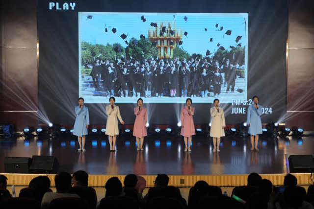 史和东同学回顾了难以忘怀的大学旅程,表达了对老师、同窗的感激不舍和对母校的美好祝愿。雄关漫道真如铁,而今迈步从头越。他号召即将奔赴各行各业的年轻学子们,要勇敢肩负起时代赋予的使命,紧握时代的接力棒,在强国建设、民族复兴的伟大征程中贡献青春和力量。 毕业典礼文艺汇演