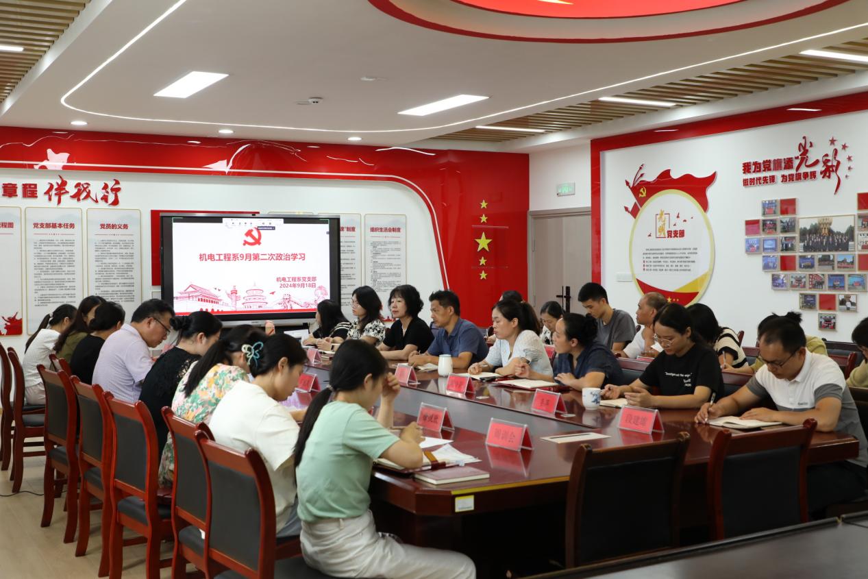 为深入学习宣传贯彻习近平总书记在全国教育大会上的重要讲话精神,紧紧围绕立德树人根本任务,朝着建成教育强国战略目标扎实迈进。机电工程系于9月18日在厚泽楼322开展9月份第二次政治学习,会议由机电工程系党支部书记马龙凤主持,全系教职工参加。
