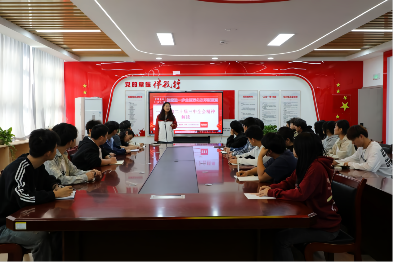 为深入学习贯彻党的二十届三中全会精神,扎实做好全会精神学习宣传工作,有力有效推动全会精神入脑入心,凝聚青春奋进之力,机电工程系党支部组织委员朱键华同志于2024年10月25日中午13:10在厚泽楼322为学院68期基层党校学习班暨学院“青马工程”第十四期大学生骨干培训班学员开展“学习贯彻党的二十届三中全会精神”专题宣讲。