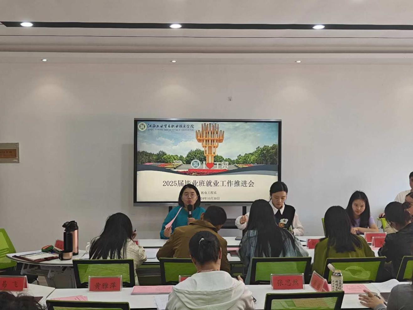 为全面落实党中央、国务院关于高校毕业生就业工作的决策部署,按照省教育厅最新工作要求,全力推动我系2025届毕业生就业工作。机电工程系于2024年10月30日中午在厚泽楼323召开了机电工程系2025届毕业生就业工作部署会。机电工程系副主任晏慧敏、就业干事张惠超等相关老师及全体2025届毕业班辅导员参加此次会议。