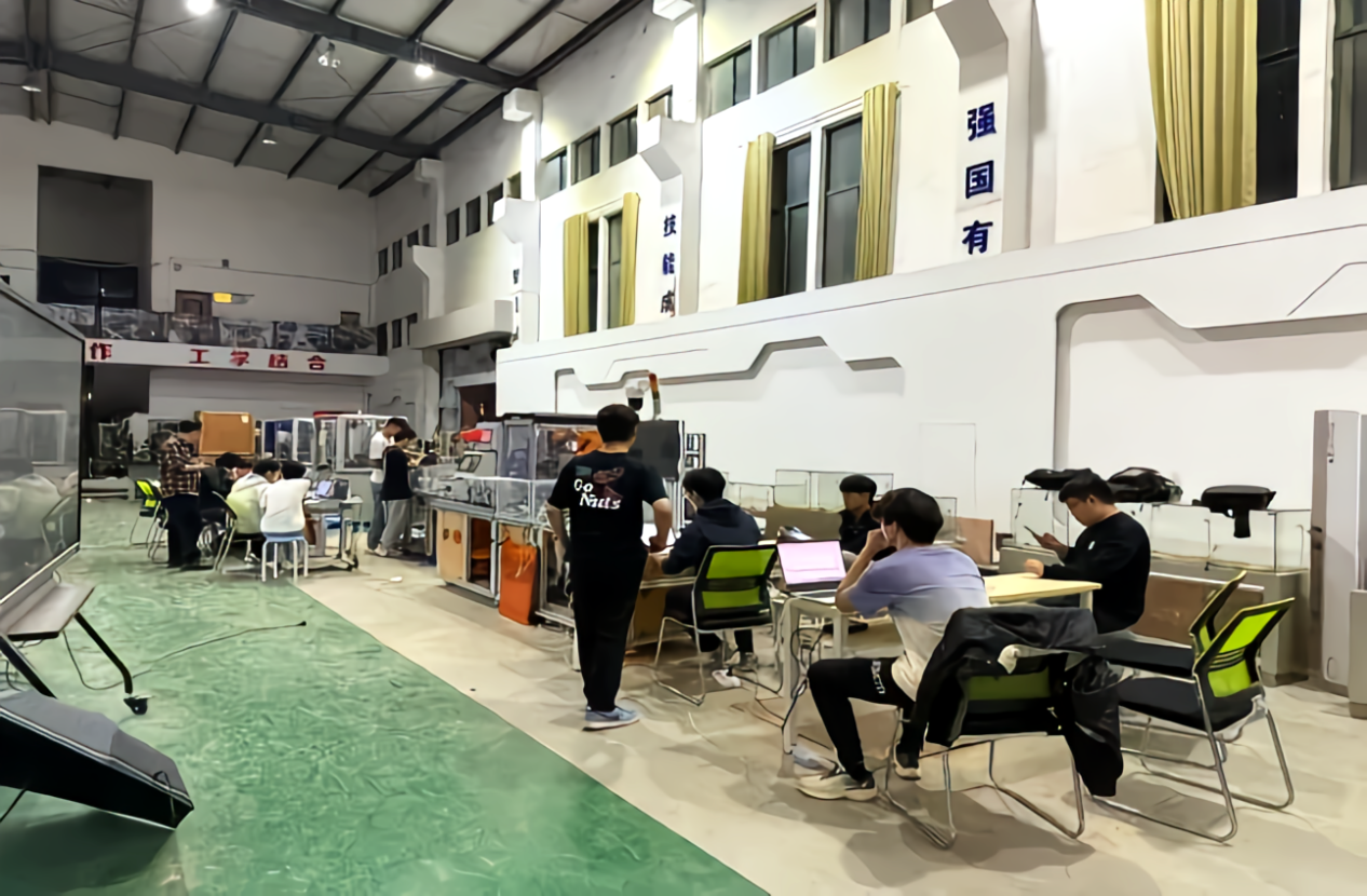 培训班围绕装备制造业工业机器人系统集成应用技术产业链核心技术,从汽车行业广泛使用机器人应用场景,汽车轮毂加工典型机器人系统集成数字化设计方案,数字化仿真设计;现场硬件环境搭建、气路安装与调试、智能视觉安装与调试等;PLC组态及通讯调协、PLC程序编写与调试;机器人程序架构及功能编程;生产线联调等核心技术分模块授课。课程采用理实一体化模式进行,有效落实岗课融合、赛课融合。