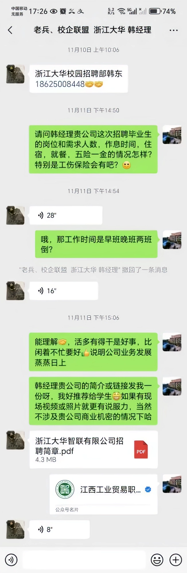 对于分布较分散、路途较远的企业, 专业老师进行线上一对一走访,通过视频连线的方式了解企业详细情况。实现了招聘会的精准邀约,进一步提高了毕业生的参与度,全力保障2025届毕业生高质量就业。