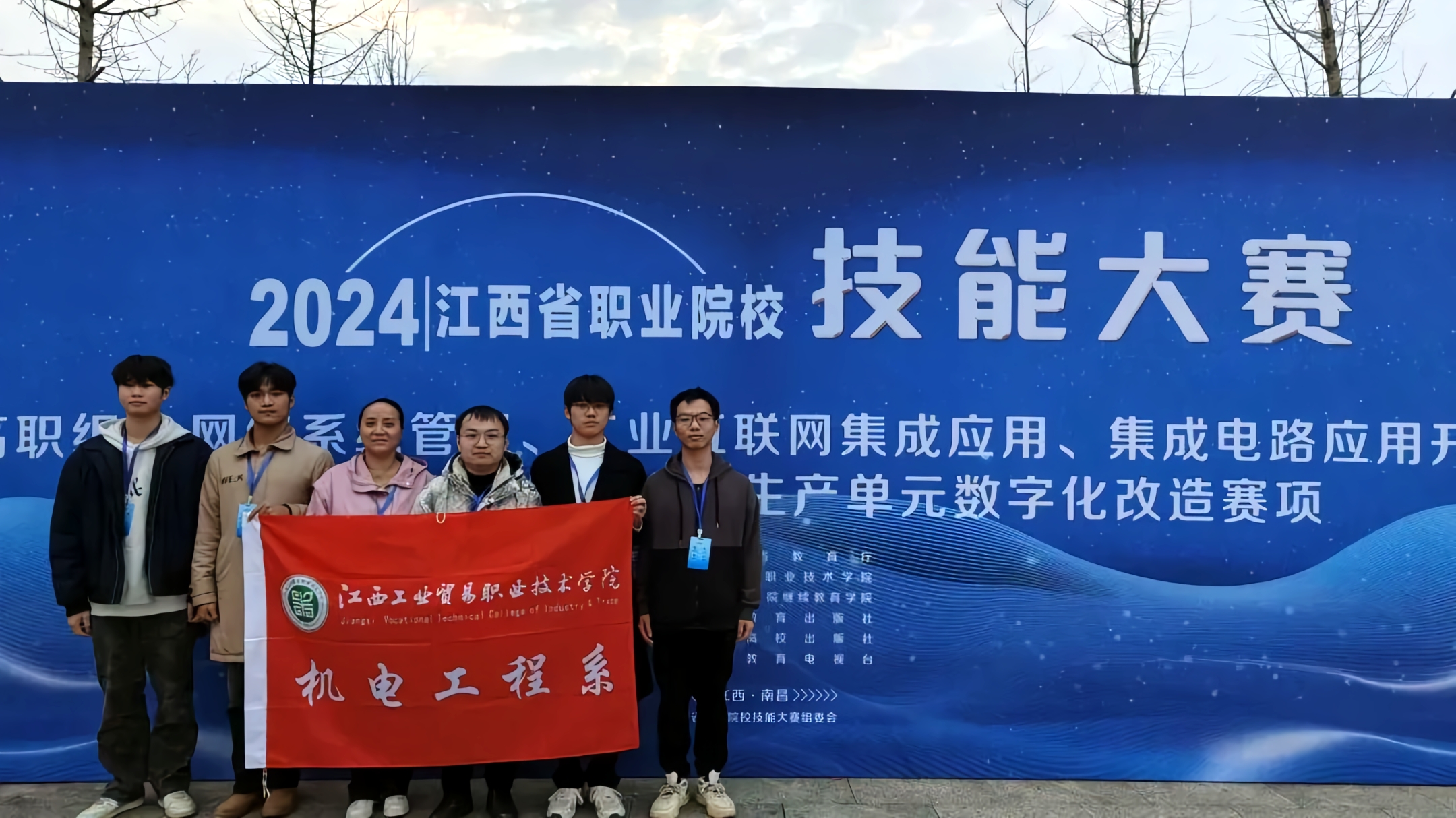 2024年江西省职业院校技能大赛高职组“生产单元数字化改造”赛项于12月7日在江西机电职业学院圆满落下帷幕。学院机电工程系胡晓莉老师、罗标、袁晨鸿、团队及胡建昌老师、徐书清、林振坤团队参加此赛项角逐,经过一天的激烈比赛,获得该项目2个二等奖。