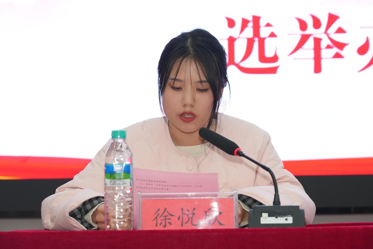 专职辅导员徐悦欣宣读《第二十一届自律会学生代表大会选举办法》