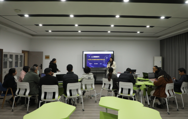 此次培训旨在积极响应学院教务处关于创新教学模式、提升教学质量与效率的号召,紧跟教育信息化发展趋势,充分利用AI智慧课程平台,为教师提供先进的教学工具和方法。 本次培训由经验丰富的付恬老师主讲,她以其深入浅出的讲解和丰富的实战经验,赢得了参训教师的一致好评。付老师不仅详细讲解了AI智慧课程平台的使用方法,还现场解答了教师们在实际操作中遇到的问题。培训内容涵盖了AI智慧课程平台的基本操作、AI助教的运用、课程知识图谱建设、课程智能体训练等多个方面。参训教师不仅学习了如何利用AI技术提升教学效果,还了解了如何将AI工具融入日常教学中,以实现教学模式的创新。