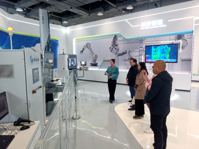 江西海克斯康作为全球领先的数字化智能制造解决方案供应商,在精密测量、工业软件及智能工厂建设等领域具有显著技术优势。企业负责人张总对学院教师的到访表示热烈欢迎,并带领团队参观了企业展厅及人才培训实训室,详细介绍了海克斯康的核心技术、业务布局及人才需求。教师们近距离观摩了高精度测量设备、自动化生产线及数字化管理平台,对行业前沿技术和发展趋势有了更直观的认识。