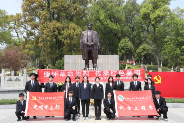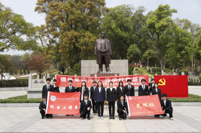 又是一年清明时,慎终追远祭英魂。为深切缅怀革命先烈浴血奋战的峥嵘岁月,传承红色基因,弘扬民族精神,厚植爱国情怀,4月3日上午,机电工程系组织委员朱键华和团总支书记王卉怡依托“党建带团建”长效机制组织系“光明班”成员前往方志敏革命烈士纪念园开展“缅怀革命先烈 传承红色基因”清明祭英烈活动。