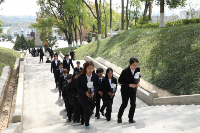 拾阶献花铭忠骨 赤心接力续基因 松柏苍翠,忠魂赤红。师生们手捧白花,沿着11层157级台阶缓缓而上,在方志敏烈士墓前敬献鲜花,垂首静默,以无声的致敬,完成跨越时空的精神对话。我们今天的幸福生活,是无数革命先烈用鲜血和生命换来的,我们应当接过历史的接力棒,让英烈精神在代代相传中焕发出新的时代光芒。