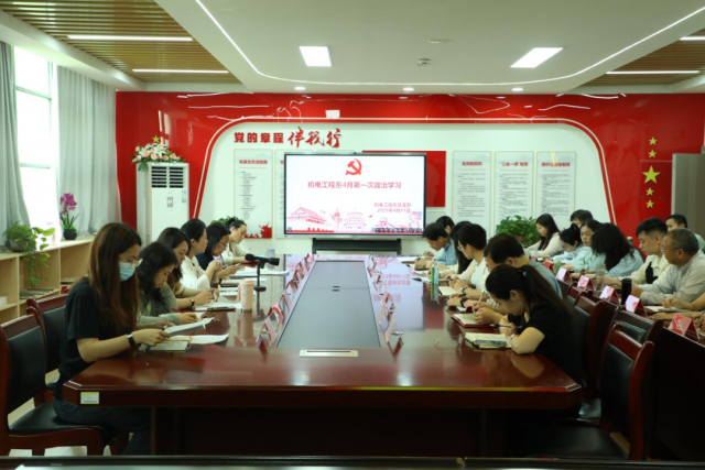 为深刻学习领会习近平新时代中国特色社会主义思想,进一步筑牢拒腐防变的思想防线,推动系部高质量发展,4月11日,机电工程系在厚泽楼322室开展4月份第一次政治学习,全系教职工参加,会议由机电工程系党支部书记、主任马龙凤同志主持。