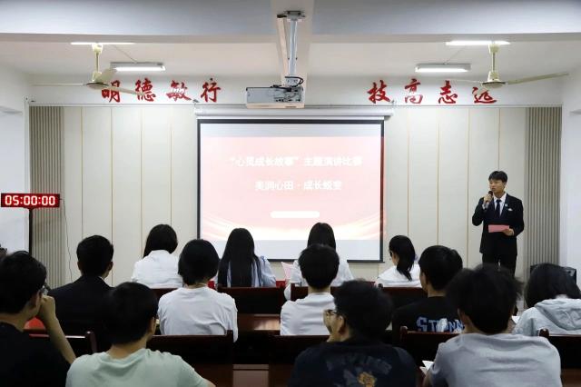 为深化心理健康教育,传递积极向上的成长力量,5月9日,机电工程系“美润心田、成长蜕变”心灵成长故事主题演讲比赛在学院一站式活动社区举行,机电工程系学生工作负责人陈欢、专职辅导员罗晓雯、陈高超、张信歌参加活动并担任评委。12名参赛选手依次走上舞台,分享自己的心灵成长经历,为现场观众带来一场触动心灵的视听盛宴。 比赛现场,12位选手用真挚的情感、生动的语言,讲述着各自独特的成长故事。有的选手分享了在学业困境中,如何通过自我反思与不懈努力,逐步突破瓶颈,实现成绩提升和自信心重塑;有的选手讲述了在家庭变故的冲击下,从迷茫痛苦到勇敢直面,学会担当与坚强的心路历程;还有选手回忆起人际交往中的挫折,通过主动沟通和自我调整,收获了珍贵的友谊,完成了心灵的成长。他们的故事,或温暖感人,或励志激昂,展现出成长过程中面对困难时的坚韧不拔,以及心灵在磨砺中不断蜕变的力量,引发了现场观众的强烈共鸣,赢得阵阵热烈掌声。