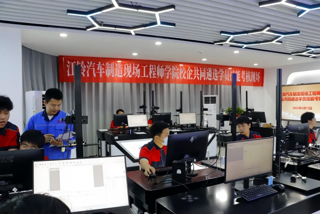 淬炼工程技能遴选江铃匠才 江铃汽车制造现场工程师学院学员遴选技能考核在产教融合大楼905开展,通过系统规范的考核流程选拔优秀学员,并完成综合评分及名单确定。本次技能考核特别邀请了江铃汽车股份有限公司高级技师、全国劳模杨准正,全国汽车行业青年岗位能手曾志平现场参与遴选,最终32名优秀学员与企业签订定向培养协议。本次活动有助于深化校企资源共享与协同联动,为产学研用一体化、技术创新及实习就业衔接等领域合作开拓新局,推动产教融合向更高水平迈进。