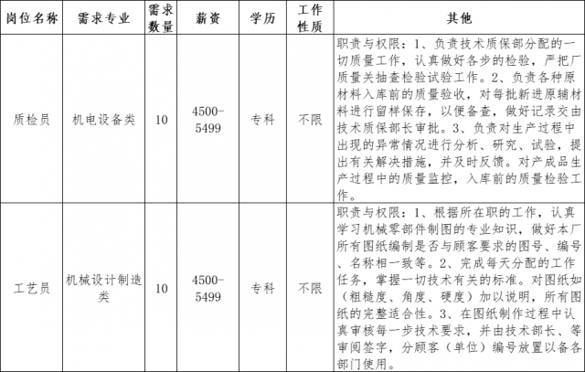 企业2:江西佳时特数控股份有限公司 江西佳时特数控股份有限公司位于江西省南昌市小蓝经济开发区,成立于2004年,注册资金8000万元,占地面积50亩,建有20000平米加工车间和恒温车间的现代化厂房。是一家集中高端精密数控机床及自动化柔性生产线设计、制造、销售和服务为一体的国家级高新技术企业。公司以数字化制造技术为核心,以高精、高速、高效为发展方向。 招聘岗位: