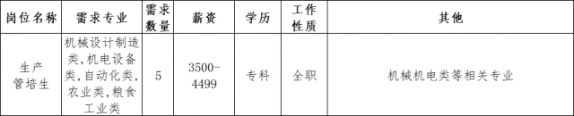 企业5:南昌海大生物科技有限公司 南昌海大生物科技有限公司是广东海大集团旗下一家全资子公司(集团于2009年11月在深圳A股正式上市,股票代码002311),座落在美丽的英雄城—南昌,公司于2009年成立,并于2012年5月投产,公司占地面积41亩,主要从事水产料、禽料的生产和销售,拥有6条饲料生产线,日产量800吨,年产量可达30万吨。 岗位需求: