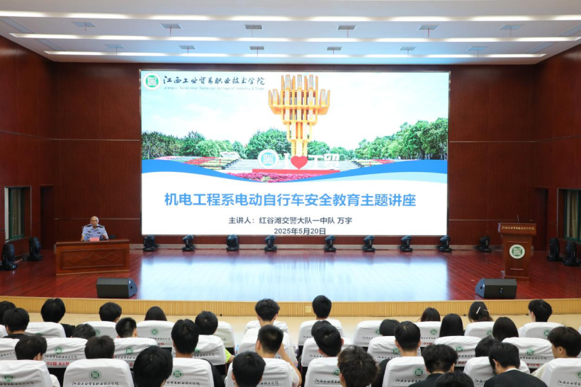 为进一步加强校园电动自行车安全管理,增强师生交通安全意识。机电工程系特邀红谷滩交警大队一中队万宇警官于5月20日19:00在学术报告厅开展电动自行车安全教育主题讲座,学生工作负责人陈欢、综治信息员王卉怡及学生代表参加。本次讲座围绕电动车法律法规学习、校园电动车使用乱象分析、规范管理措施等内容展开,旨在营造安全有序的校园交通环境。