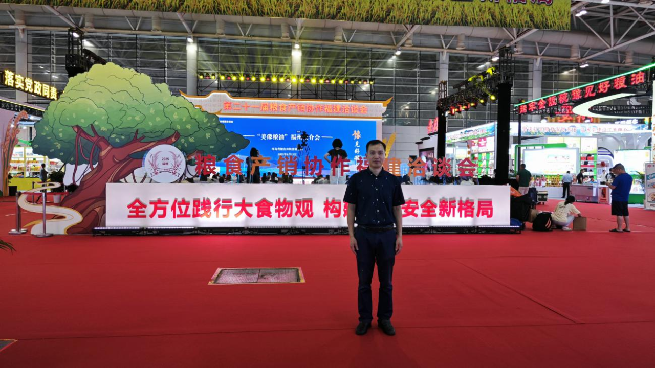 2025年6月13-14日,第二十一届粮食产销协作福建洽谈会在福州海峡国际会展中心7号馆盛大举行。我院江西省教育厅粮油智能检测与加工运输装备重点实验室主任谢晖与产学研培发展中心魏佳韵老师及相关老师受邀参会,此次参会旨在加强学院与粮食行业的交流合作,就粮油加工、深加工技术、物流、粮食加工机械、储粮设备技术、检测检验仪器和信息化等项目调研洽谈,推动学校与粮食企业产学研深度融合。