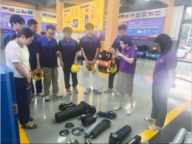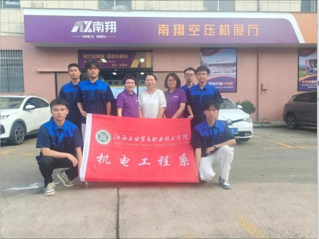 6月26日,机电工程系教师韦娜带领6名学生走进江西南翔空压机有限公司开展实地学习交流活动,旨在深化产教融合,提升学生职业技能与实践能力。 活动中,企业技术负责人详细介绍了空压机的生产流程、核心技术及行业发展趋势,并带领师生参观了智能化生产线与质检车间。学生们在工程师指导下动手操作设备,直观理解课堂理论在实际生产中的应用。同时与企业代表还就人才培养方案优化、校企合作课程开发等议题展开座谈,为后续进一步开展产教融合事宜奠定基础。
