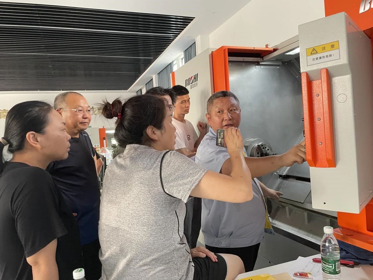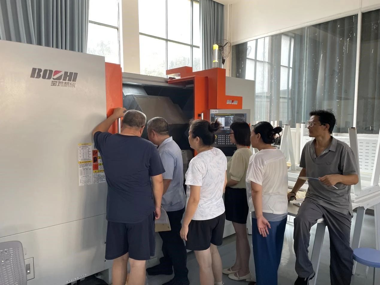 7月3日-7月12日,机电工程系先进智造实训基地机床轰鸣、精密仪器有序运转——为期8天的“数控加工与检测项目”暑期专项实训正如火如荼展开。参加此次培训的教师有黄勇刚、周金莲、魏丹丹、朱祖武、彭容、龚春芬、胡素萍和钟传枝。本次实训聚焦数控设备操作与精密检测两大核心能力,旨在为教学注入前沿技术动能。 在数控加工实训单元,教师们深入现代制造核心腹地。从工艺路线规划、数控编程到实际切削操作,参训教师系统掌握了高效高质加工链条。实训现场,他们化身一线技师,依据图纸编制程序,在车铣复合加工中心精准操控,将设计构想转化为合格零件。安全规程内化于心,每一步操作都体现着严谨的工匠精神,实践能力在金属切削的火花中淬炼提升。