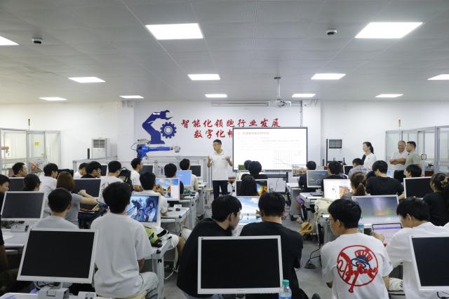 新生见面会结束后,毛鹏飞一行和晏志勇一行分别来到智能制造实训中心、综合实训大楼和思泽楼教室,亲切看望2024级机械设计制造及其自动化专业和物联网工程专业学生,与学生们亲切交流,叮嘱同学们珍惜专业学习机会,为职业发展打下坚实基础。