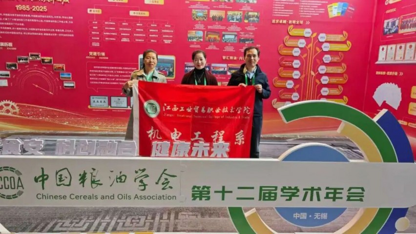 10月25日至27日,由中国粮油学会与江南大学联合主办的中国粮油学会第十二届学术年会暨新成果、新技术、新装备、新产品展览会在江苏无锡隆重召开。我院机电工程系马龙凤主任、江西省教育厅重点实验室主任谢晖、李秋香博士三位教师代表学院参会,围绕国家“双高计划”专业群建设、省级重点实验室发展等核心议题,与来自全国粮油领域的近1000位高校专家、科研院所学者及企业代表开展深度学习交流,精准对接行业前沿动态,为学院高质量发展汲取先进经验。  本届年会以“粮优食安 科创融合 健康未来”为主题,设置了主旨报告、院士论坛、分会场交流、成果展览等丰富板块,全方位展现粮油领域最新科研进展与产业发展趋势。  在为期三天的交流活动中,马龙凤、谢晖、李秋香三位教师紧扣学院发展重点,针对性参与多个核心环节。在“粮食加工数智化与能源管理”“粮油智能检测技术创新”等专题分会场,他们认真聆听专家学者的专题报告,重点关注粮油智能加工装备研发、质量检测技术革新、产业链数字化转型等行业热点,详细记录相关领域的技术突破与应用案例。就国家“双高计划”工业机器人技术专业群建设,借鉴学会中校企成功经验,为学院专业群优化人才培养方案、提升实训教学质量提供新思路。  作为学院科研创新的重要载体,“江西省教育厅粮油智能检测与加工运输装备重点实验室”的建设发展是本次交流的重点任务之一。该实验室于2024年12月正式获批立项,是学院首个省级重点实验室,标志着学院在科研创新领域实现关键突破。交流期间,三位教师专程走访年会展览展示区,实地考察粮油智能检测仪器、自动化加工生产线等最新装备,与参展企业技术负责人就设备研发、校企合作科研攻关等议题进行洽谈,为实验室打造“省内领先、国内先进”的科技创新平台积累实践经验。