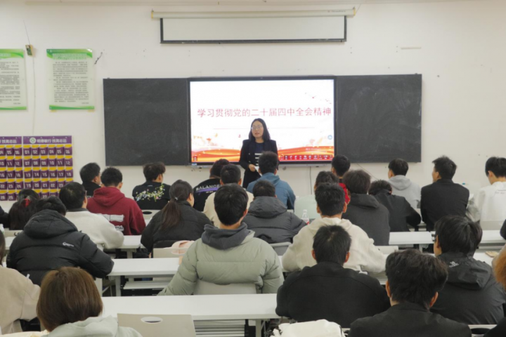 为深入学习贯彻彻党的二十届四中全会精神,引导广大青年学子深刻领会全会内涵与核心要义,我系于11月24日在先进制造产教融合实训基地305教室,开展“学习党的二十届四中全会精神”主题团课。本次主题团课由系党支部副书记陈欢主讲,60余名业余团校学生参与学习。