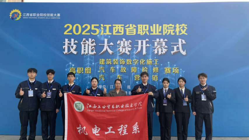 2025年江西省职业院校技能大赛高职组“汽车故障检修”“汽车营销”赛项于12月5日至7日在江西交通职业技术学院如期举行。机电工程系新能源汽车技术和新能源汽车检测与维修技术专业选派的两支代表队凭借扎实的专业技能和出色的现场表现,在激烈的比赛中脱颖而出。由李洪娟、段建雄两位老师指导的邓嘉鹏、陈诗琦、李帅杰、汪正尧四位同学获“汽车故障检修”赛项团体二等奖,高健、陈雄两位老师指导的熊文强、吴济安、朱奕欣、谭圣洁四位同学获“汽车营销”赛项团体三等奖,展现了学院汽车类专业人才培养的优良成果。
