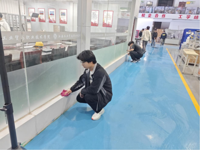 活动期间,同学们分组对数控加工区、视觉实训室、机电一体化工作站等场所进行深度清洁与基础维护。大家仔细擦拭设备表面、整理线路管线、规整工具耗材、清扫作业区域,确保实训环境安全、整洁、有序。在动手实践中,同学们不仅进一步熟悉了专业设备的构成与保养要点,更在团队协作中体会到“一丝不苟、精益求精”的工匠内涵。