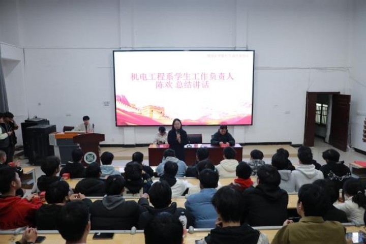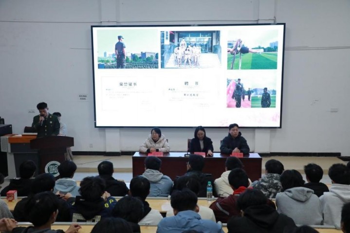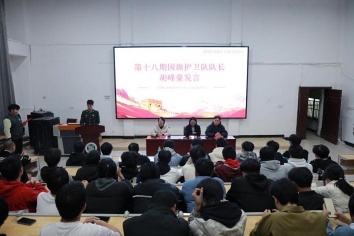 为弘扬爱国主义精神,加强国防教育,培养一支纪律严明、作风过硬、信念坚定的国旗护卫队伍,激发广大青年学子捍卫国旗、报效祖国的热情,机电工程系于2025年12月16日在乐学楼214举行国旗护卫队队员招募动员大会。机电工程系学生工作负责人陈欢、学工处国旗护卫队负责老师王志鹏、机电工程系武装工作负责老师张信歌、第十八期国旗护卫队队长胡峰豪、第十七期国旗护卫队副队长洪永翔、机电工程系退伍军人优秀代表郑俊康、学院国旗护卫队全体队员及各班级学生代表共计200余人参加大会。 大会在庄严的国歌声中拉开帷幕。 王志鹏老师致开幕词,他阐述了国旗护卫队的光荣传统与神圣职责,分享了队员们在日常训练中严守纪律、刻苦拼搏的动人点滴,让同学们深刻感受到这是一支有担当、能吃苦、讲奉献的优秀队伍。 随后,学院第十八期国旗护卫队队长胡峰豪、第十七期国旗护卫队副队长洪永翔以及机电工程系退伍军人优秀代表郑俊康依次发言。 胡峰豪表达了对国旗护卫工作的崇高敬意,并代表全体队员郑重承诺:将继续秉承优良传统,恪尽职守、精益求精,以最高标准完成每一次任务,为国旗增添新的荣光。 洪永翔结合自身在国旗护卫队的成长经历,分享了训练中的汗水与感动、仪式中的自豪与庄严,并表达了即将带着国旗护卫队的荣光投身军营、报效祖国的坚定决心。 郑俊康则以一名退役军人的视角,用质朴而有力的语言,讲述了军人对国旗的忠诚守护,并鼓励队员们将这份忠诚与严谨融入日常训练,让青春在国旗照耀下绽放更加灿烂的光芒。