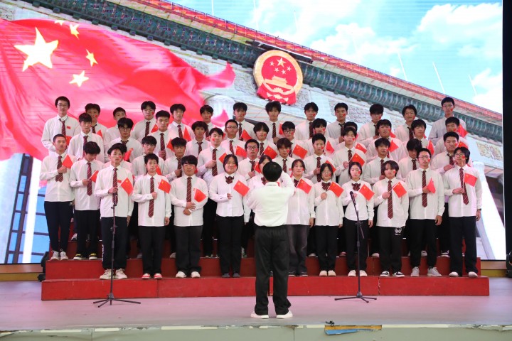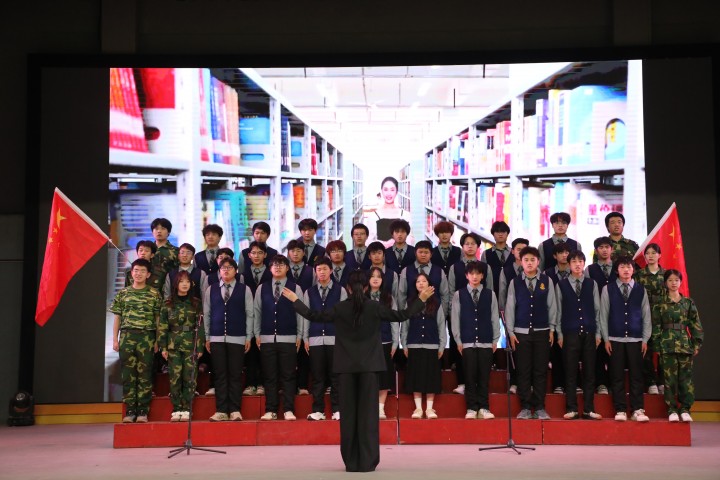 各参赛班级精心筹备,从选曲、队形到指挥选拔均细致打磨,将配乐、舞蹈、情景表演与道具展示巧妙融合。在限时8分钟的表演中,辅导员和同学们以铿锵有力的声调、真挚饱满的情感,唱响校歌《匠心筑梦》以及《团结就是力量》《没有共产党就没有新中国》《歌唱祖国》等经典红色歌曲。
