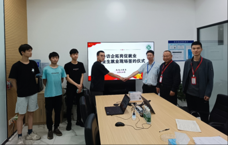 访企拓岗促就业 毕业生就业现场签约 机电工程系教师以产教融合、校企合作为主线,以实地走访、座谈交流、回访毕业生等形式,与企业深入交流沟通合作,与走访企业签订合作协议,有效整合企业资源、学校教学资源、企业实践资源。双方通过深入的交流和探讨,共同签署了校企合作与校外实习就业基地协议,希望通过彼此的合作,实现毕业生高质量就业。机电系教师主动走进中小微企业,此是机电工程系践行“产教融合、校企合作”发展主线的生动实践,也是主动服务中小微企业、发挥党建引领作用的具体举措。 教师一行深入产线了解企业用工需求,收集企业及毕业生对学院人才培养的反馈,挖掘毕业生实习就业机会。三家企业介绍了企业的发展概况、业务领域、人才需求、培训体系、发展前景、福利薪资以及校企合作模式等政策,重点介绍了人才招聘政策。
