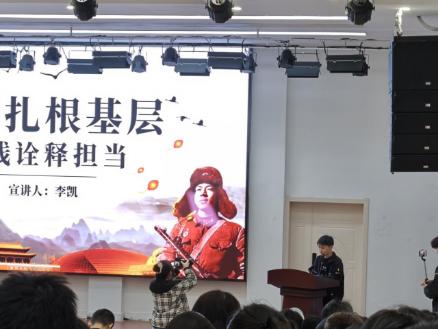 雷锋知识竞答环节气氛热烈、互动频繁。围绕雷锋生平、经典事迹、精神名言等内容,同学们踊跃举手、积极抢答,在轻松有趣的氛围中巩固知识、加深理解,让雷锋精神从理论记忆转化为生动可感的思想认同。 身边榜样最有力量,身边故事最能动人。2024级同学刘舒、郭鹏、李凯三位同学依次登台,分享自己践行雷锋精神的真实经历。他们从日常学习互助、校园志愿服务、社会实践奉献等小事说起,用朴实语言讲述举手之劳的温暖、尽职尽责的坚守,让同学们真切感受到:雷锋精神从未远去,就在日常点滴之中,就在身边行动之间。